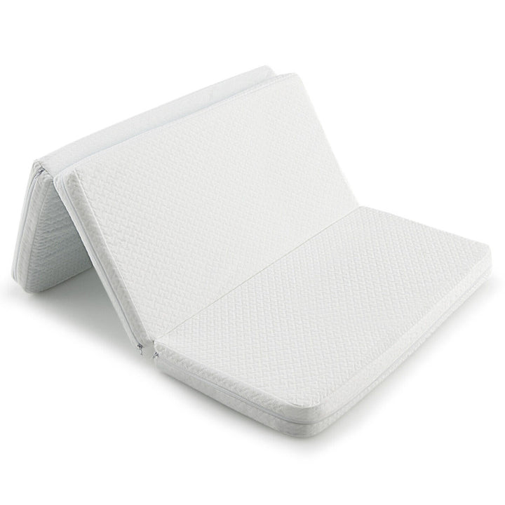 38 x 26 Inch Tri-fold Pack and Play Mattress Topper Mattress Pad with Carrying Bag-White