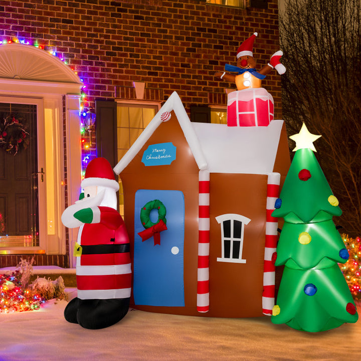 The 7 ft vivid Christmas inflatable decoration features a gingerbread man, gingerbread house, Santa Claus, and Christmas tree, creating a charming and whimsical display in your yard during the holiday season. Also, it will instantly grab the attention of anyone passing by.